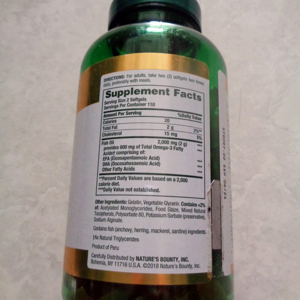 Viên uống Dầu cá không mùi 1000mg của Peru phân phối bởi Nature’s Bounty từ Mỹ bổ sung cho chế độ ăn uống hàng ngày , chứa Acid béo Omega 3 , EPA , DHA , giúp hỗ trợ sức khỏe tim mạch , giảm nguy cơ mắc bệnh mạch vành .